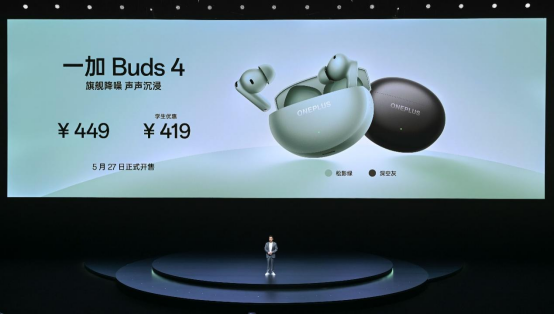 一加此次还带来了一加 Buds 4 耳机以及多款全新配件新品。全新耳机一加 Buds 4,提供松影绿和深空灰两款配色,机身至充电仓均采用磨砂金属质感,尽显高级。音质方面,一加 Buds 4 搭载高低音双单元与双 DAC,带来千元旗舰级的澎湃听感。降噪功能更是亮点,人声降噪深度比苹果 AirPods Pro 2 提升 62%,提供极致纯净的聆听体验。此外,AI 翻译功能支持同声传译和面对面翻译,让跨语言沟通毫无压力。耳机售价 449 元,学生优惠价 419 元。
